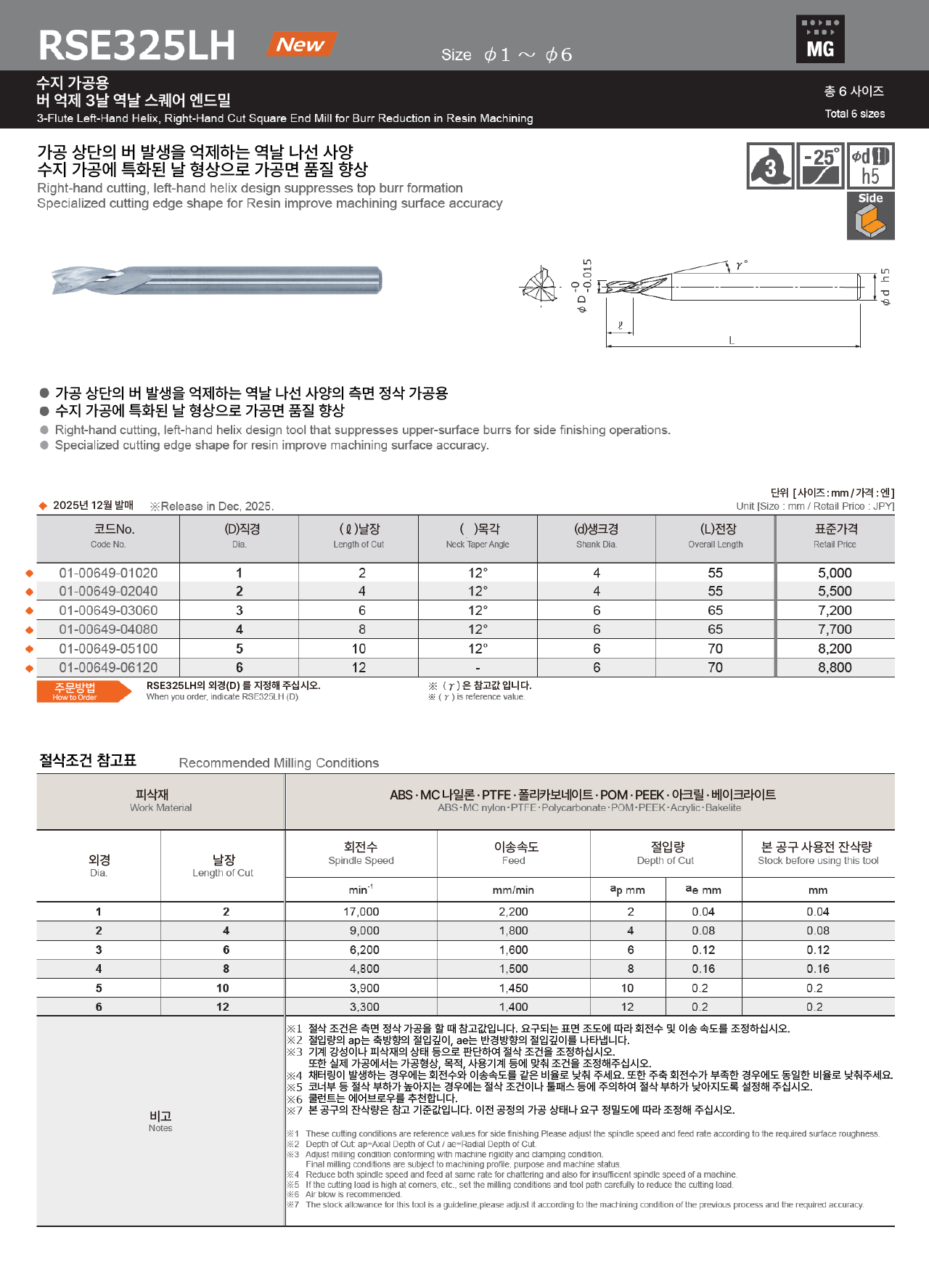 [신제품] 수지 가공용 역날 스퀘어 엔드밀 RSE325LH 출시!
